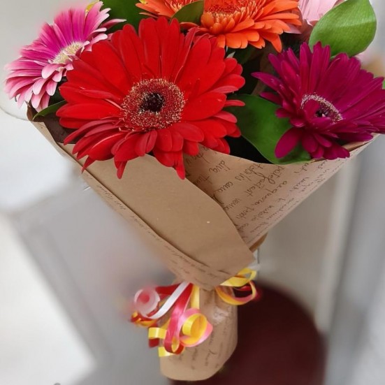 Доставили оперативно, слаженно, молодцы. Открытку подписали вручную, что очень понравилось. После заявки доставили за пару часов, как и обещано.