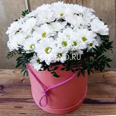 31 Хризантема белая в шляпной коробке