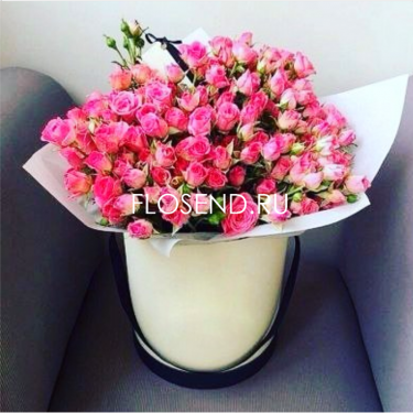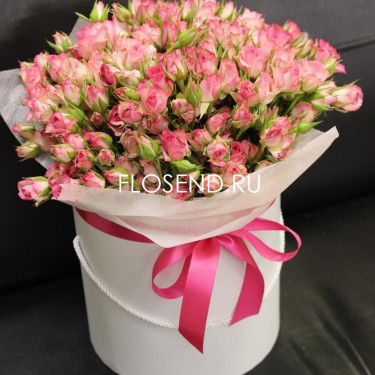 51 кустовая розовая роза в коробке