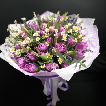 Букет «25 фиолетовых пионовидных тюльпанов»